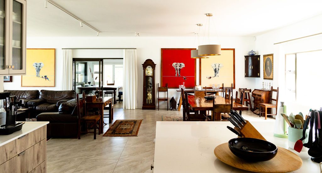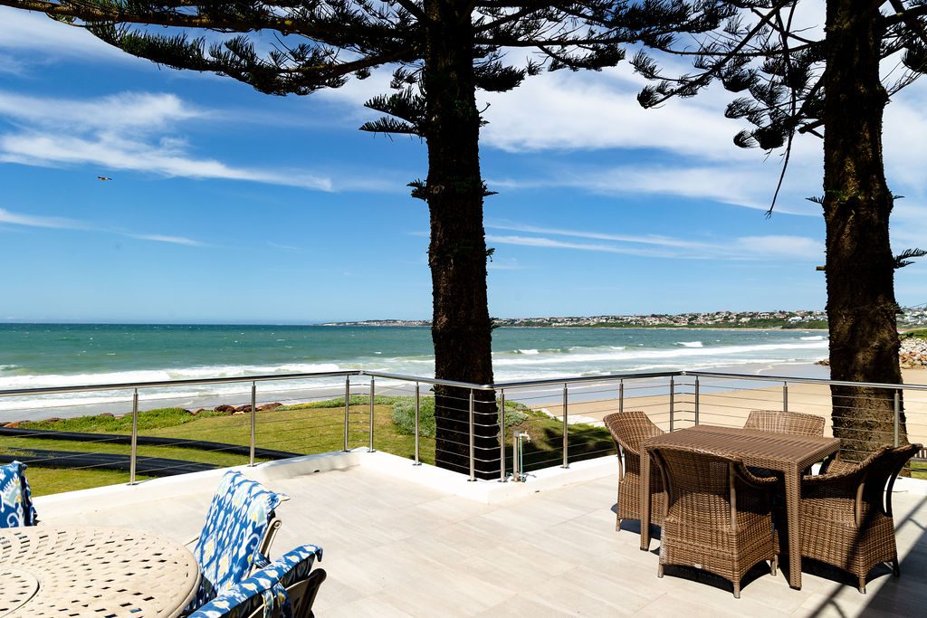 Large family home on the sea. Vast open plan kitchen dining and lounge area with internal braai area with additional lounge, dining and bar area. Sliding doors open out onto patio area with a swimming pool.
