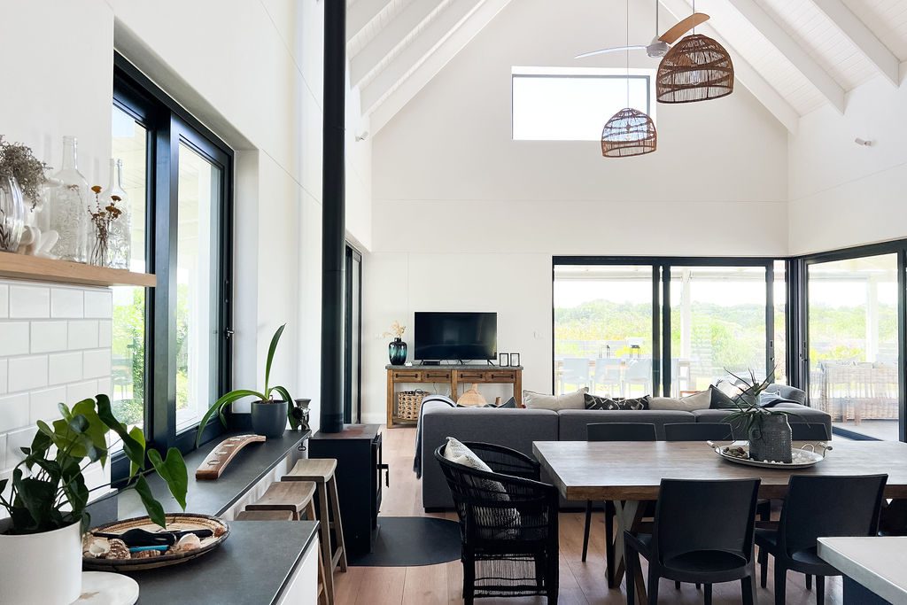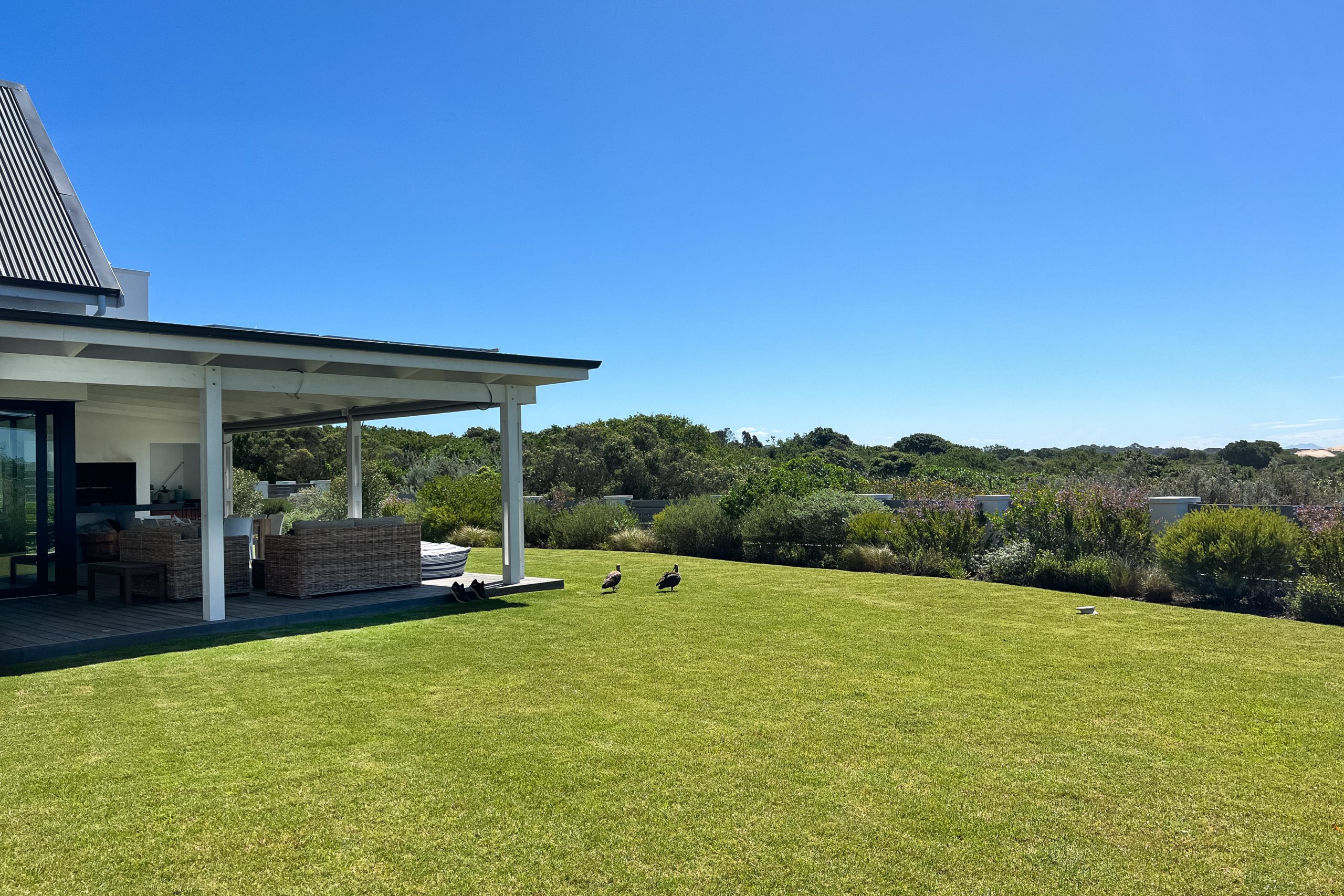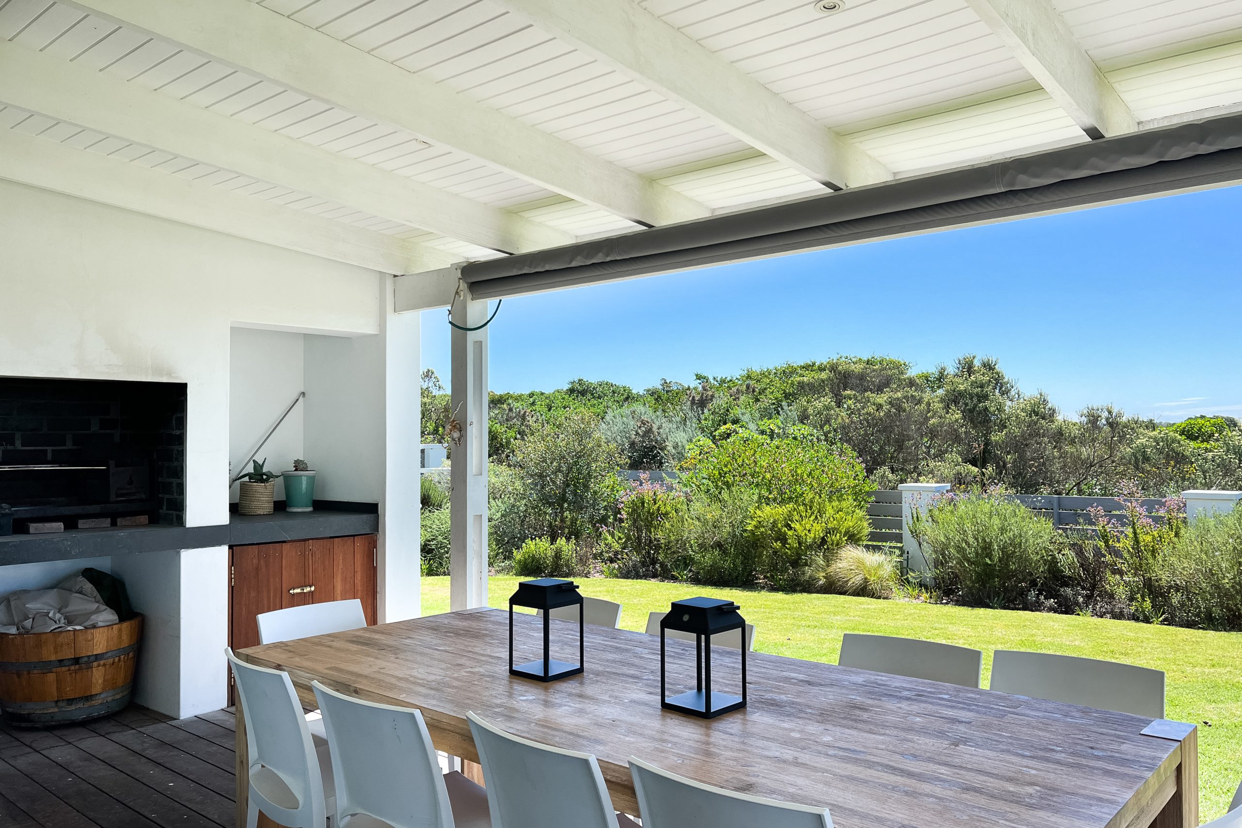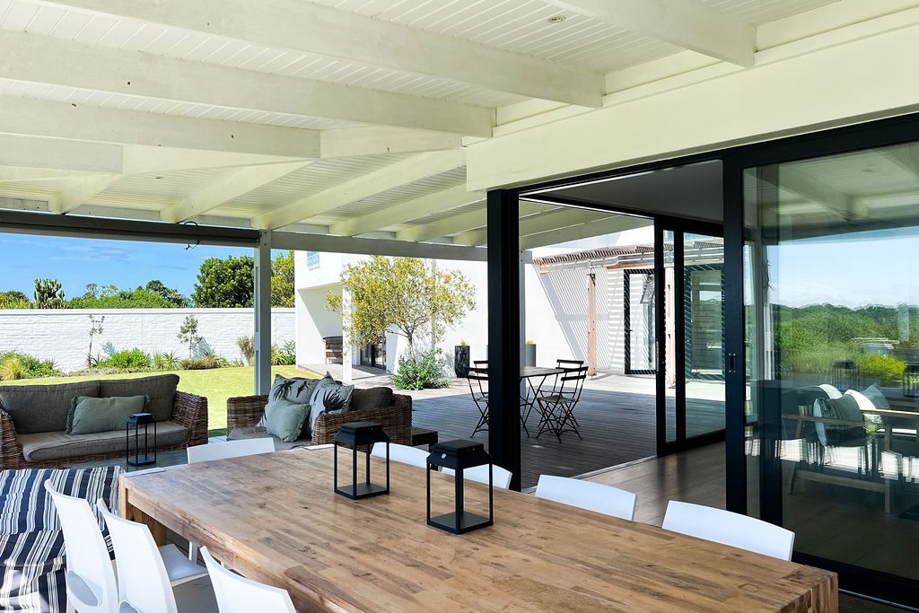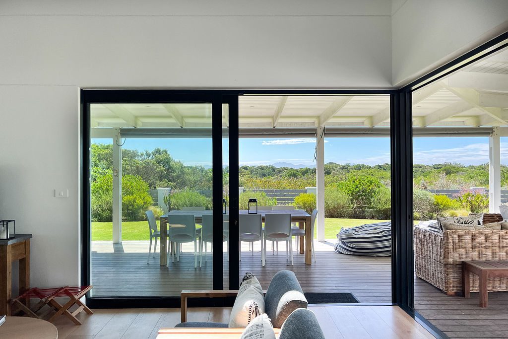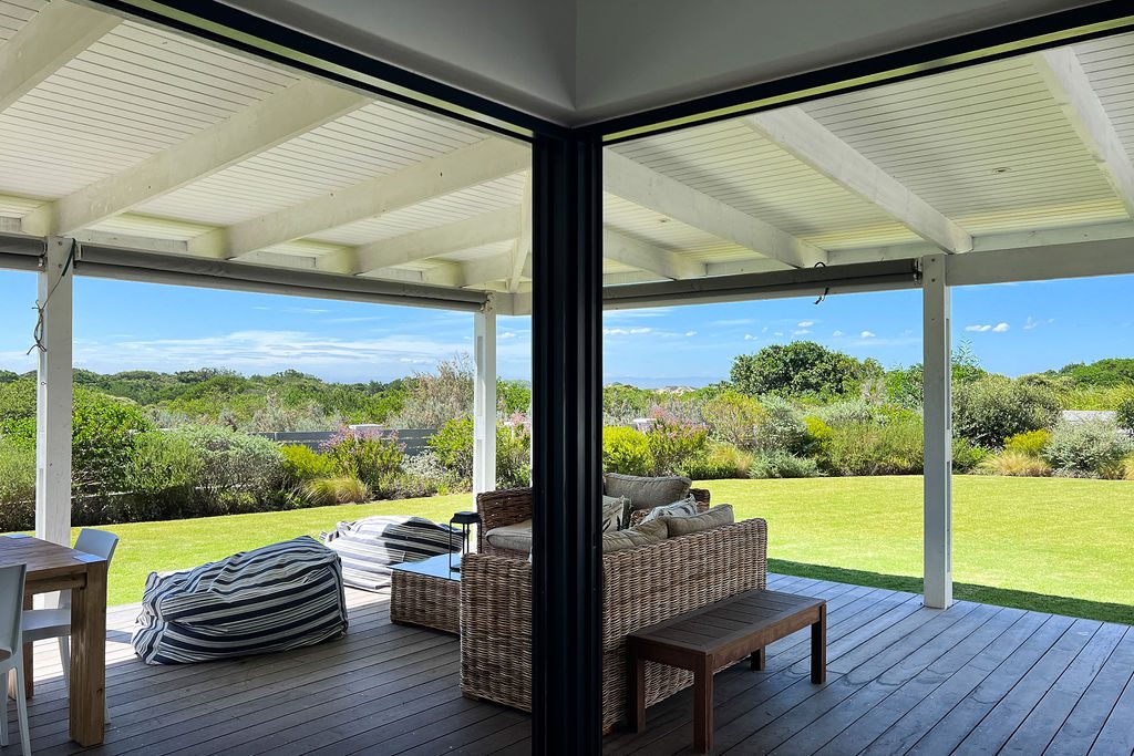 This beautiful, modern spacious home is situated on the St Francis Links Golf Course overlooking the reserve where the bird life is plentiful. Open plan kitchen, dining room and lounge area with indoor fireplace. Sliding doors open onto outdoor braai area kitted out with a wood braai and Weber.