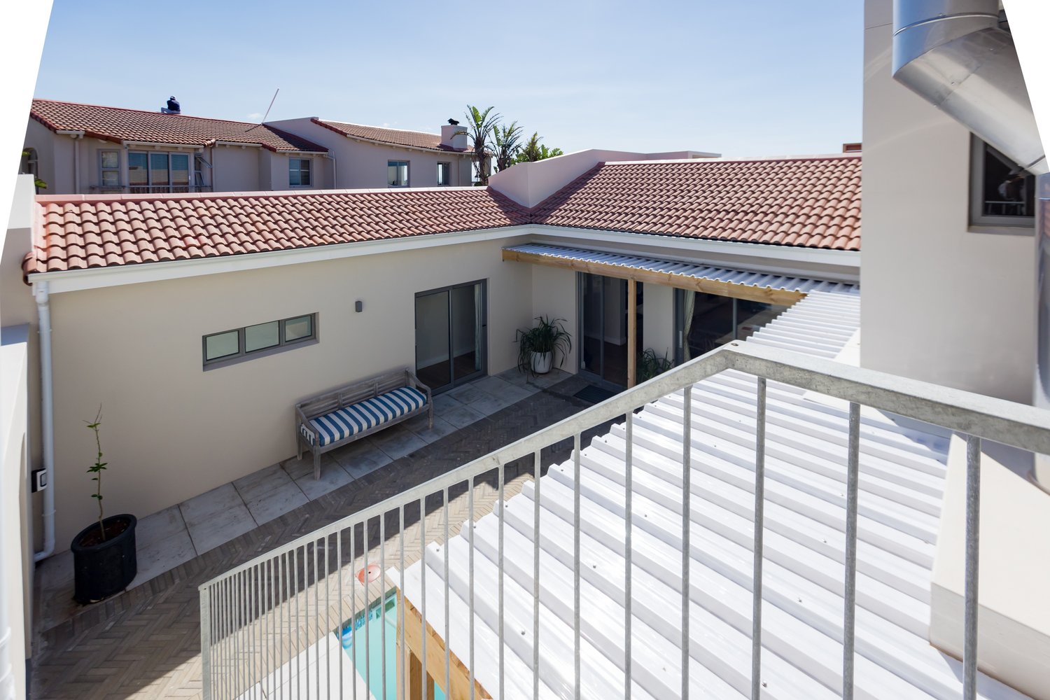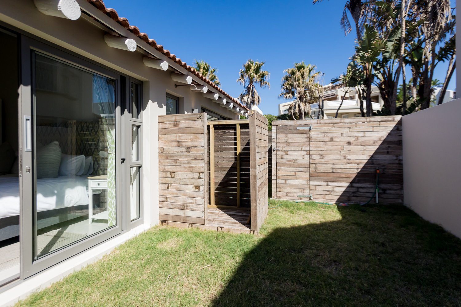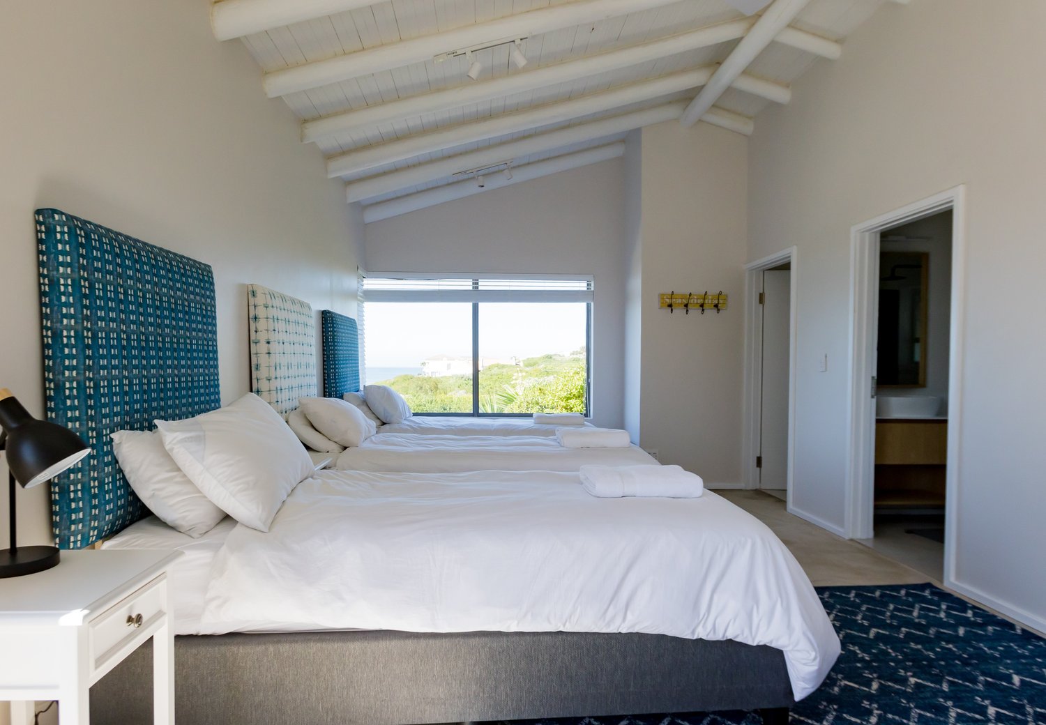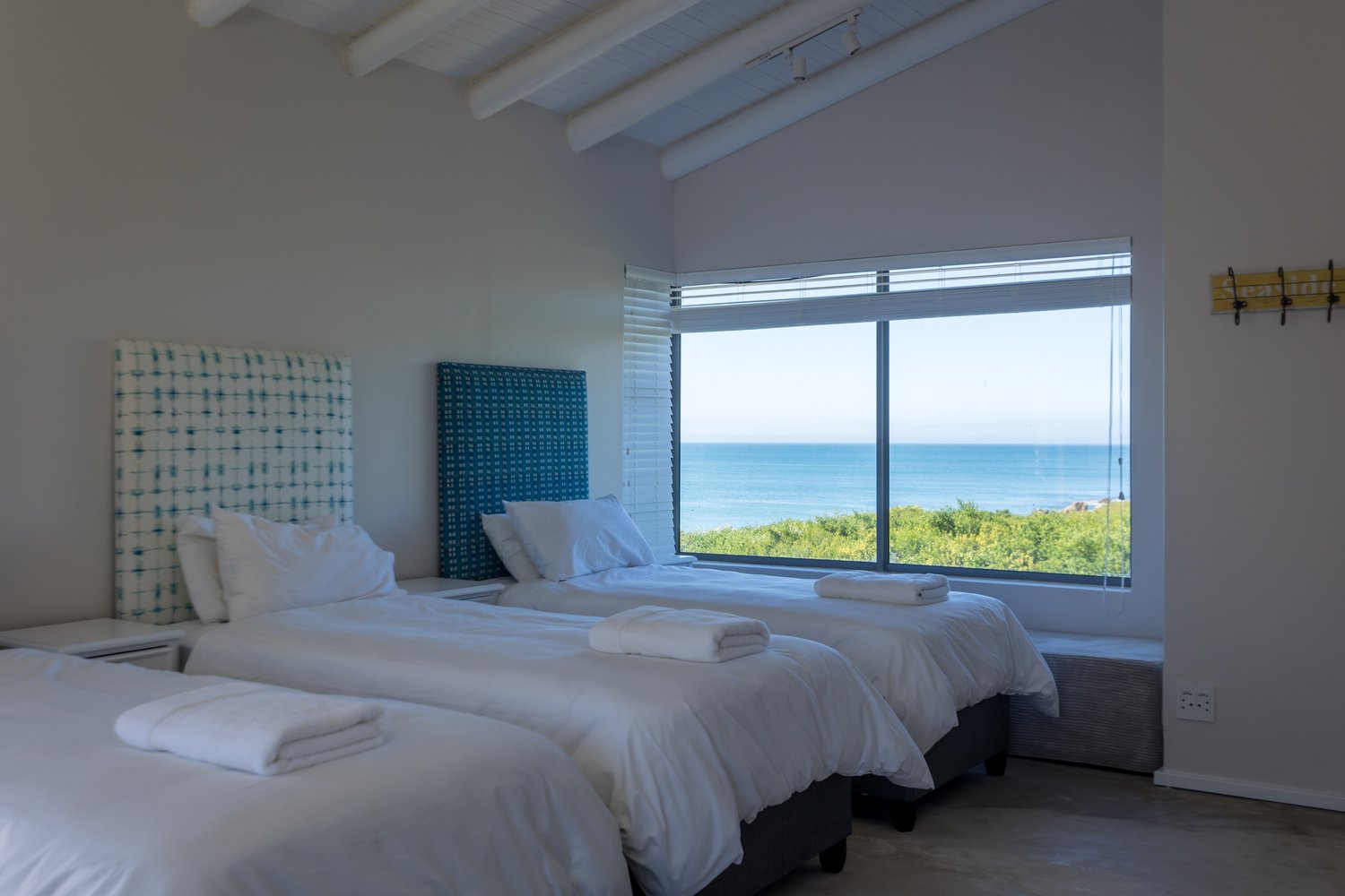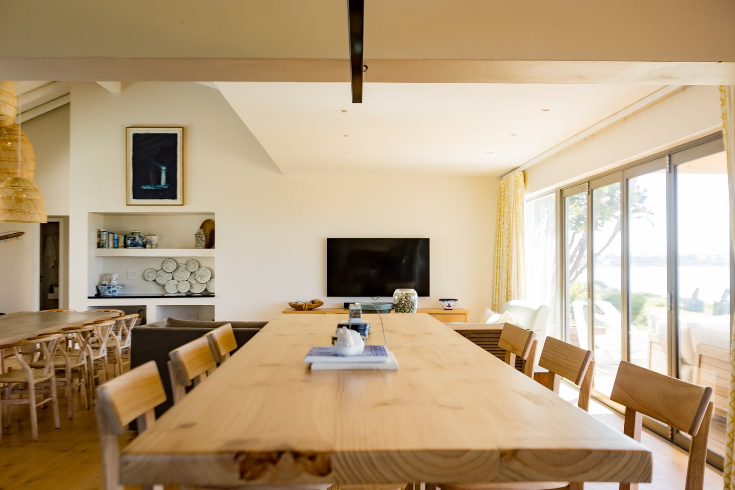 Gorgeous bespoke seafront Santareme home overlooking the bay with a large open plan kitchen, dining and lounge area opening out onto the deck, pool area and sea. Protected courtyard for braaing.
