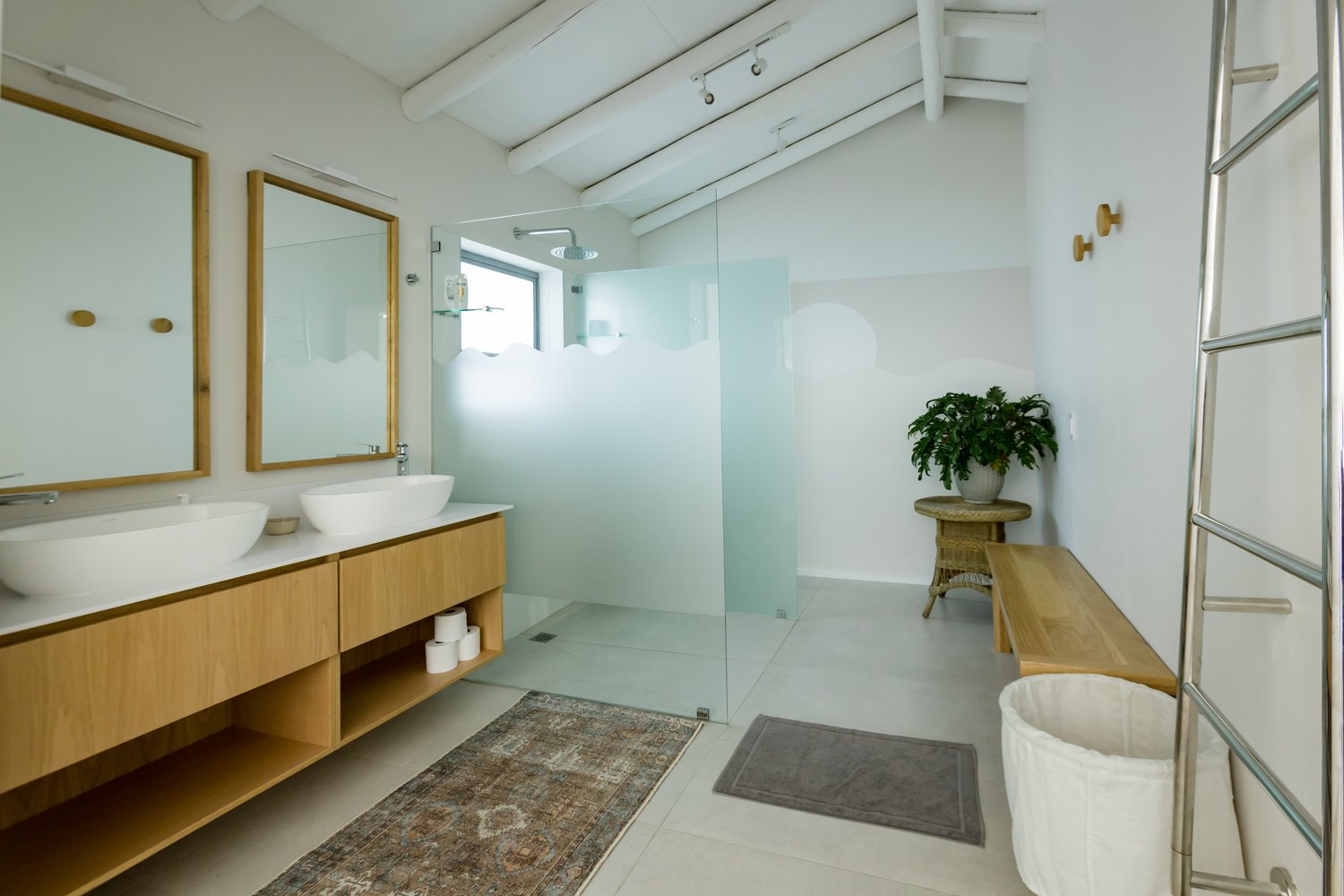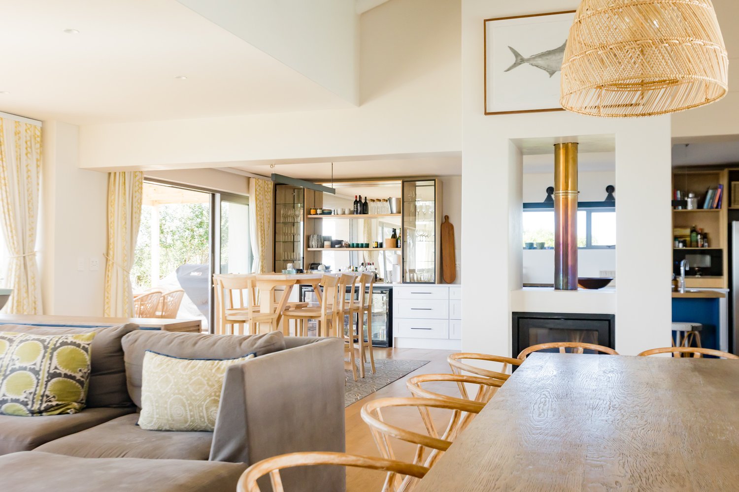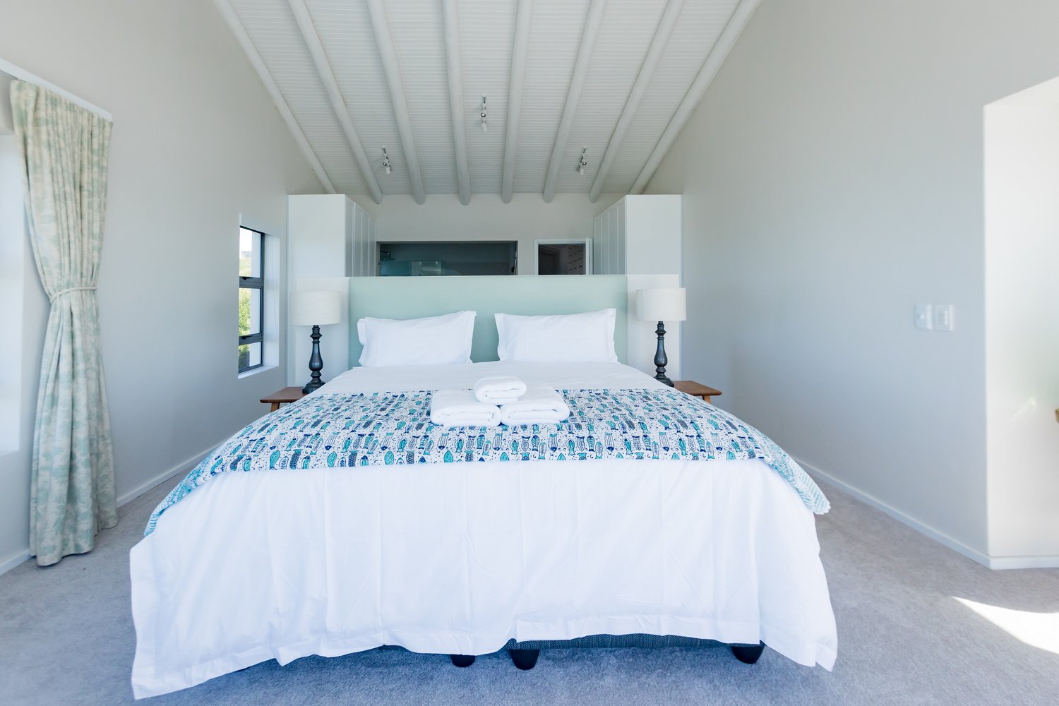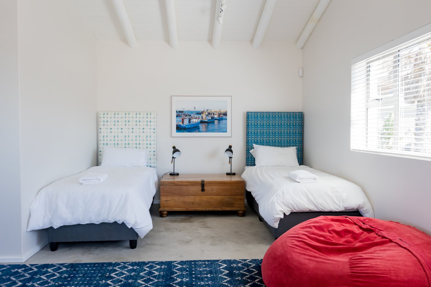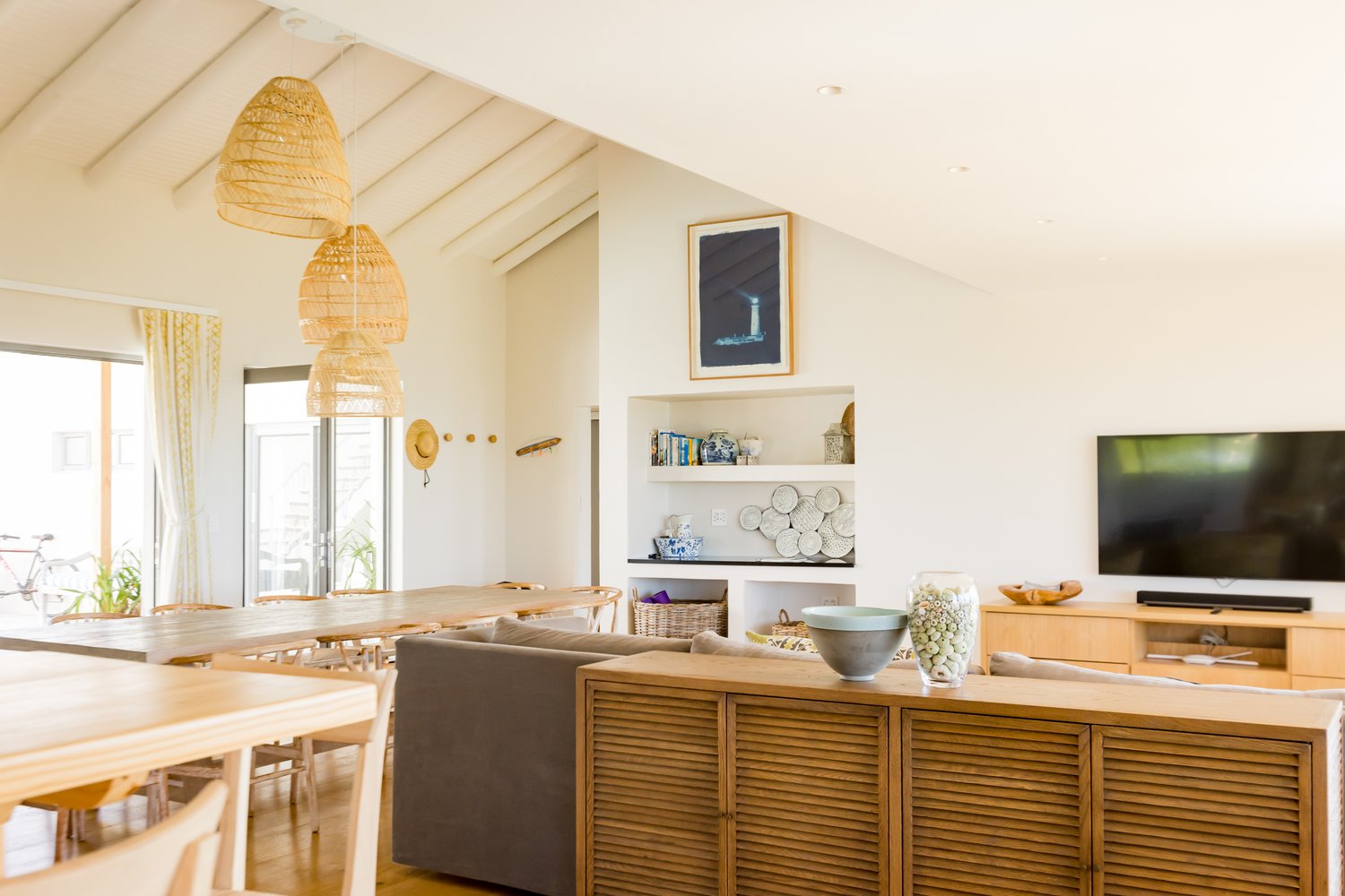 Gorgeous bespoke seafront Santareme home overlooking the bay with a large open plan kitchen, dining and lounge area opening out onto the deck, pool area and sea. Protected courtyard for braaing.